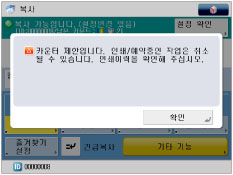 [컬러 선택]에 대해 [자동 (컬러/흑백)] 또는 [자동(컬러/그레이)]이 설정된 경우 컬러 또는 흑백(그레이스케일) 제한면수에 도달하면 어떤 작업도 수행할 수 없습니다.