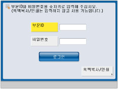 복사/인쇄, 스캔하여 저장, 그리고 스캔하여 송신 기능 등 다양한 기능을 자동(컬러/흑백) 또는 자동(컬러/그레이) 모드에서 사용하는 경우 부문 ID 및 비밀번호를 입력해야 합니다. 흑백 모드에서 복사 또는 인쇄 기능을 사용하는 경우에는 부문 ID 및 비밀번호를 입력할 필요가 없습니다.