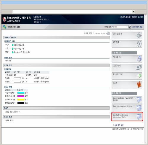 관리 프로그램에서 [User Setting Information Management Service]를 클릭합니다.