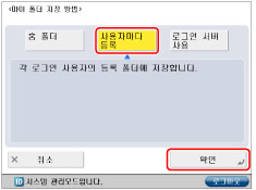 [내 폴더 지정방법] → [사용자마다 등록] → [확인]을 누릅니다.