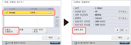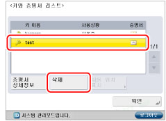 (무효화)가 표시된 경우 키 페어가 손상되었거나 사용할 수 없습니다. 이 경우에는 키 페어를 삭제하고 새 키 페어를 등록하십시오. ("키 페어와 서버 인증서 생성." 또는 "컴퓨터에서 설치된 키 페어 파일과 서버 인증서 파일 등록."을 참고하십시오).|