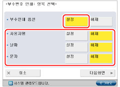 [부수번호 인쇄 옵션 설정] → <부수인쇄 옵션>에 대해 [설정] → 각 설정을 지정합니다.