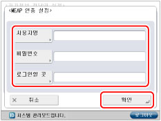 <전달측 설정>의 [MEAP 인증정보 설정]을 누르고 → 다음 설정을 지정한 후 → [확인]을 누릅니다.