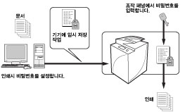 비밀번호를 할당한 다음 컴퓨터에서 본 기기로 송신된 문서(인쇄 데이터)를 인쇄할 수 있습니다.