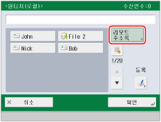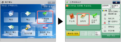 이 기능을 사용하려면 먼저 수신인을 원터치 버튼에 등록해야 합니다. (See "원터치 버튼 저장/편집/삭제.")