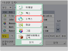 주소록 화면에서 [ㄱ], [ㄴㄷ] 및 [A~Z] 등과 같은 키를 누르면 이름에 대해 입력한 첫 번째 문자는 수신인 리스트를 정렬하는데 사용됩니다.