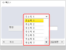 서버를 통해 문서를 송신하지 않고 수신인의 IP 주소가 DNS 서버에 등록되지 않은 경우 (사용자)@[수신인 IP 주소] 형식으로 도메인 이름을 입력하십시오. "(사용자)"에 선택한 내용을 입력합니다.