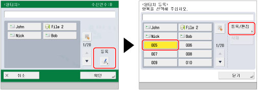 팩스 번호 등록/편집에 대한 자세한 내용은 "신규 수신인 저장."을 참고하십시오.