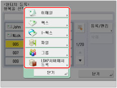 (이메일) (팩스) (I-팩스) (파일 서버) (그룹) |