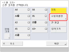 [자동크기]을 사용하여 감지할 수 없는 원고를 스캔할 때 스캔 크기를 수동으로 지정할 수 있습니다. 지정된 스캔 크기를 저장할 수도 있습니다.