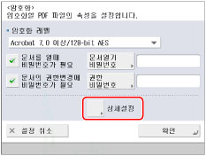 * [기능 설정](설정/등록)의 [암호화 PDF의 256-bit AES설정]에서 [Acrobat 9.0 상당]을 선택하는 경우에만 나타납니다. (See "Acrobat 10.0 또는 이에 상응하는 레벨에서 Acrobat 9.0 또는 이에 상응하는 레벨로 PDF 암호화 레벨 변경.")