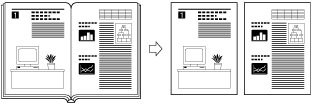 이 모드를 사용하여 책의 펼쳐진 페이지 또는 제본된 원고를 스캔하여 분할된 페이지에 기록할 수 있습니다.