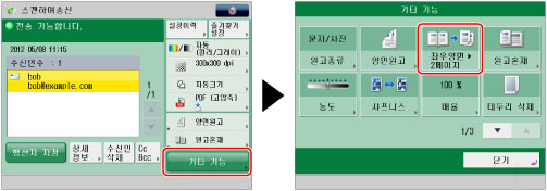 수신인을 지정하고 → [기타 기능] → [좌우양면