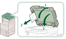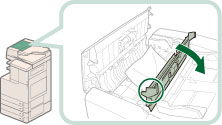 용지가 걸린 위치를 확인하고 아래 설명된 절차 및 터치 패널 화면에 나타나는 절차에 따라 걸린 원고를 제거합니다.