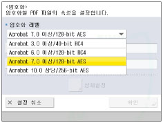 암호화된 PDF 파일에 대한 자세한 내용은 "스캔하여 송신"의 "PDF 파일 암호화"와 "스캔하여 저장"의 "PDF 파일 암호화"를 참고하십시오.
