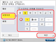 (숫자 키)를 사용하여 시작 시간을 입력하고 → [확인]을 누릅니다.