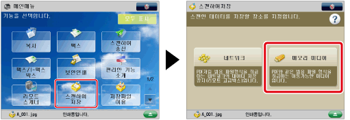 [스캔하여 저장] → [메모리 미디어]를 누릅니다.