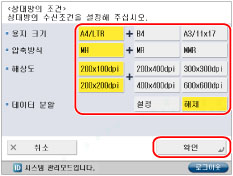 수신 기기의 사양에 따라 수신인 조건을 설정하십시오. 수신인 기기에서 지원되지 않는 조건을 설정하면 송신 에러가 발생할 수 있습니다.