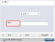 서버를 통해 문서를 송신하지 않고 수신인의 IP 주소가 DNS 서버에 등록되지 않은 경우 (사용자)@[수신인 IP 주소] 형식으로 도메인 이름을 입력하십시오. "(사용자)"에 선택한 내용을 입력합니다.