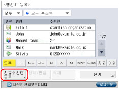 수신인을 이메일 주소 및 팩스 번호로 등록한 경우 검색 기준으로 팩스 번호를 입력하여 이메일 주소를 검색하거나 이메일 주소를 입력하여 팩스 번호를 검색할 수 있습니다.