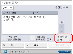 검색 결과가 수신인 리스트 화면에 이미 표시되어 있을 때 새로운 수신인 검색을 수행할 경우 표시된 검색 결과가 지워집니다.