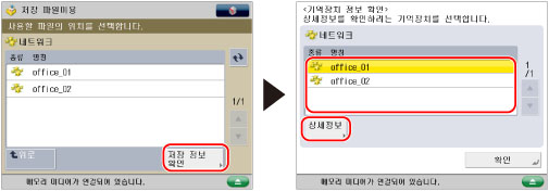 [저장 정보 확인]를 누르고 → 원하는 저장 위치를 선택하고 → [상세정보]를 누릅니다.