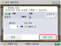 마지막 원고 묶음이 스캔된 후 다음 화면이 표시되면 [저장 시작]을 누릅니다.