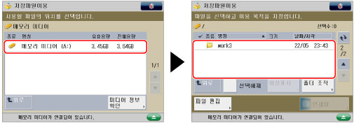 원하는 메모리 미디어를 선택하고 → 인쇄할 파일이 저장되어 있는 위치를 선택합니다.