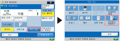 [기타 기능] → [문서열기 비밀번호]를 누릅니다.