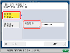 암호화된 PDF 파일을 열려면 [암호화 비밀번호]를 누르고 → [비밀번호] → 비밀번호를 입력합니다.