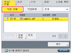 <작업 이력 화면에서 취소한 인쇄 작업에 <NG>가 표시됩니다.