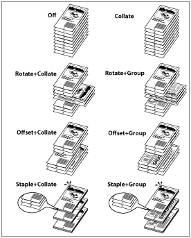 용지 크기가 LTR, LTRR, A4, A4R, B5 또는 B5R인 경우에는 [Rotate+Collate] 및 [Rotate+Group]을 사용할 수 있습니다.