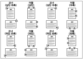 용지를 가로 방향으로 스테이플링할 경우, 이미지 방향과 스테이플 위치가 일치하지 않을 수도 있습니다.