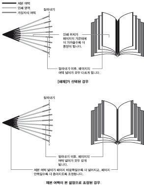 소책자의 중심이 됩니다. 가장자리의 여백 폭이 좁으면 인쇄물 중 일부가 잘릴