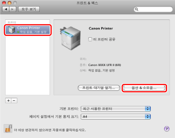 사용 중인 프린터를 선택하고 → [옵션 & 소모품]을 클릭합니다.