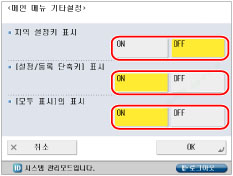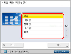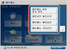 를 누르면 다음 화면이 표시됩니다. 표시된 화면에서 설정을 선택하고 메인 메뉴 화면의 표시를 설정합니다.
