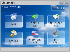 메인 메뉴 화면에서 [모두 표시]를 누르면 버튼 레이아웃을 변경했어도 모든 버튼이 기본 순서로 표시됩니다. 사용자 정의된 화면으로 돌아가려면 [모두 표시]를 다시 누릅니다.