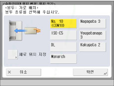[환경 설정](설정/등록)의 [수동 급지대 기본설정 등록]에 봉투 이외의 용지 크기가 등록된 경우 [수동 급지대 기본설정 등록]을 '해제'로 설정합니다.