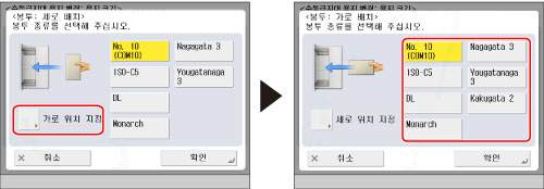[수동급지대 용지 변경]을 사용하는 경우에는 Nagagata 3 봉투에 대해 세로 세트를 지정하더라도 플랩 길이를 입력할 수 없습니다.