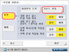 [관리설정] → [사용자 관리] → [부문별 ID관리]를 누릅니다.