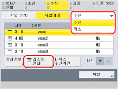 팩스 통신관리 리포트에 대한 수신 이력을 인쇄하려면 드롭다운 리스트에서 [팩스]를 선택합니다. (See "팩스통신관리 리포트.")