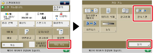 연속 스캔 모드 중에 [설정변경]에 나타나는 설정만 변경할 수 있습니다. 먼저 필요한 스캔 설정을 지정해야 합니다.