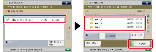 단면 원고 및 양면 원고를 스캔하여 양면 문서로 저장하려면 원고를 각각 단면 원고와 양면 원고 묶음으로 분류하십시오. 예를 들어 첫 번째 묶음이 양면 원고라면 [양면원고]를 설정하십시오. 이후 스캔할 각 원고의 묶음에 대해 수동으로 [양면원고]를 설정 또는 취소해야 합니다.