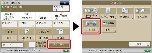 아래의 모든 조건들과 일치할 경우 [샤프니스] 설정은 유효하지 않습니다. [화상표시]에 나타나는 이미지에 설정이 반영되지만 실제 스캔된 이미지에 대한 것은 아닙니다.