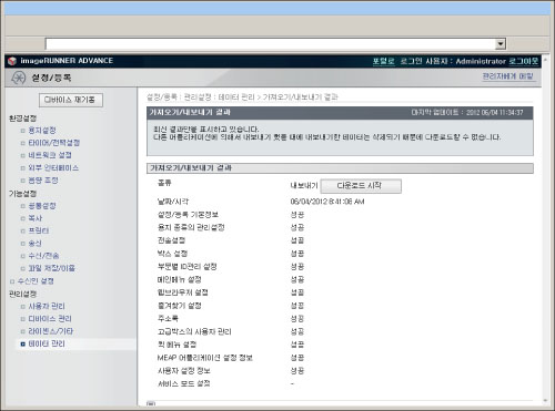 [데이터 관리] for <관리설정> → [가져오기/내보내기 결과]를 눌러서 최근 가져오기/내보내기 결과를 확인할 수도 있습니다.