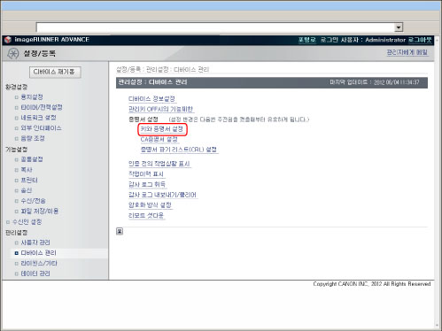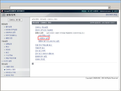CA 증명서 파일 등록에 대한 자세한 내용은 "CA 증명서 파일 등록/편집."을 참고하십시오.
