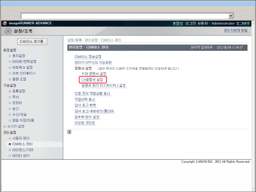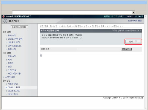 CA 증명서를 설치하려면 관리자로 로그인해야 합니다.