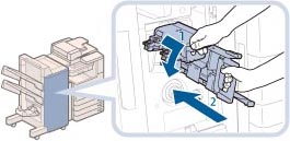스테이플 케이스를 교체한 후, 반드시 중철 유니트의 스테이플 위치를 수동으로 조정하십시오. (See "중철 스테이플 위치 조정.")