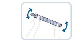 2. 양쪽 손으로 새로운 토너 카트리지를 잡고 왼쪽과 같이 부드럽게 몇 차례 기울입니다. |