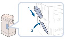 폐토너통이 가득 차면 폐토너통을 교체하는 방법에 대한 지침 화면이 터치 패널 화면에 나타납니다. 아래 설명된 절차에 따라 폐토너통을 교체합니다.